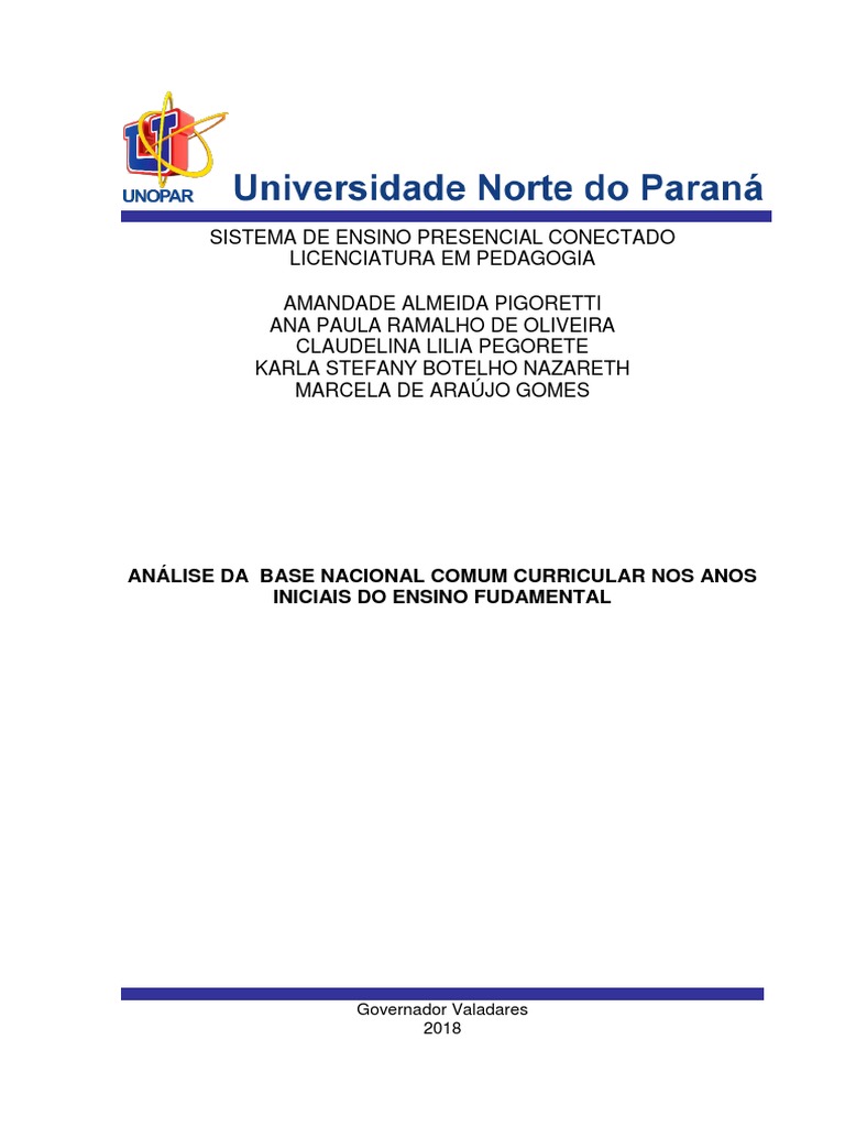 Análise da base nacional comum curricular nos anos iniciais do