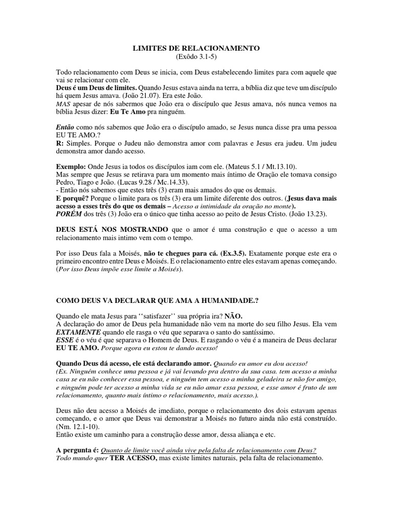 esses limites é um chamado de Deus para um relacionamento. (Êxodo 19.12).