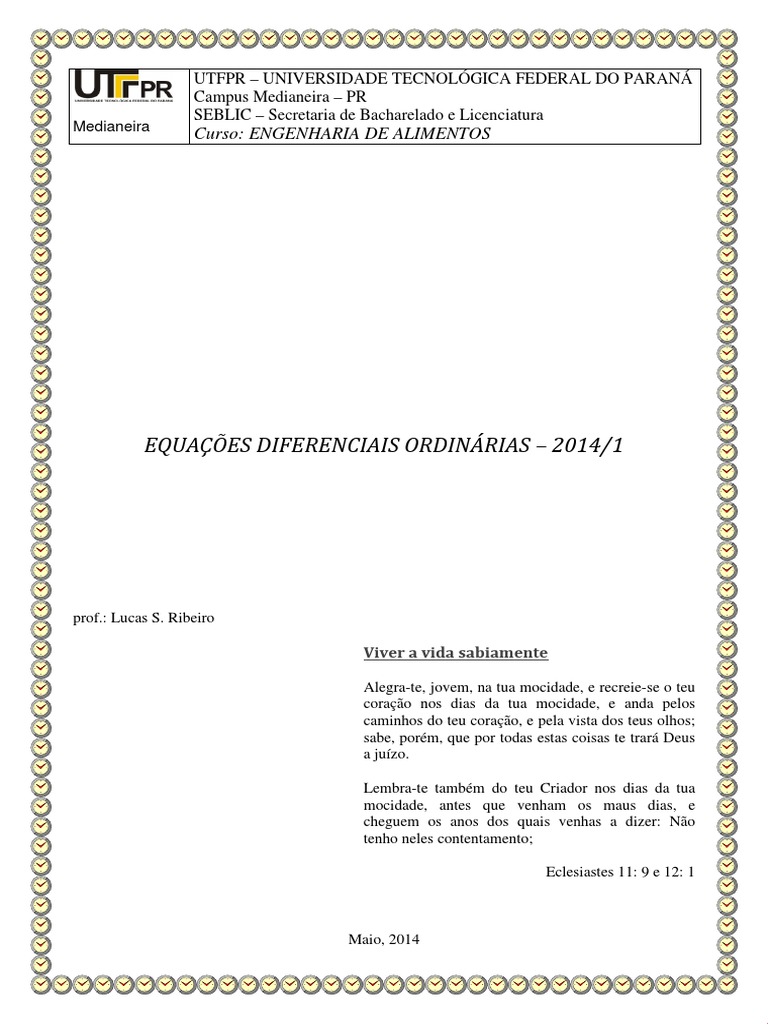 mais importantes ramos da matemática nos últimos 300 anos. Equações diferenciais são uma parte