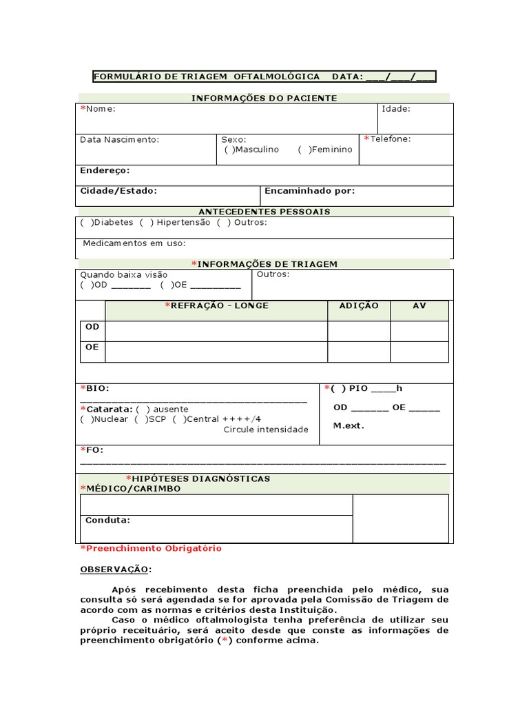 FORMULÁRIO DE TRIAGEM OFTALMOLÓGICA DATA: ___/___/___