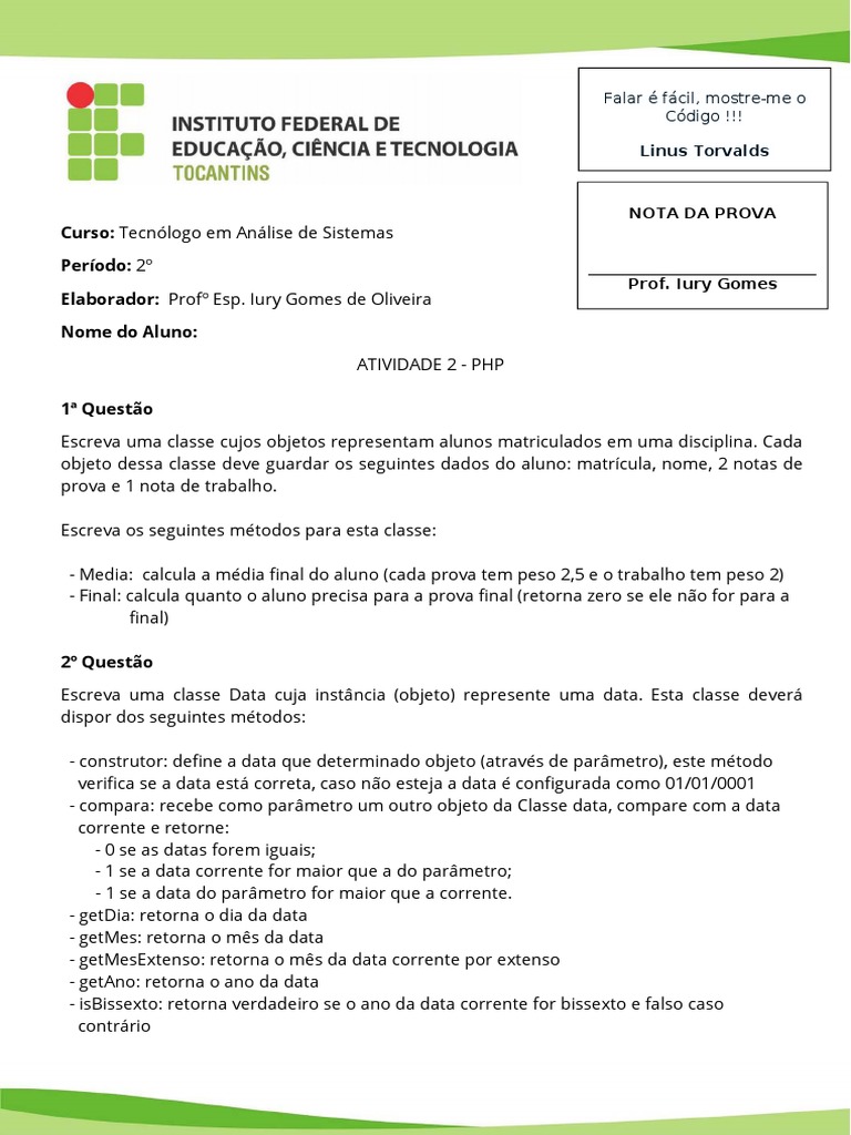 Elaborador: Profº Esp. Iury Gomes de Oliveira