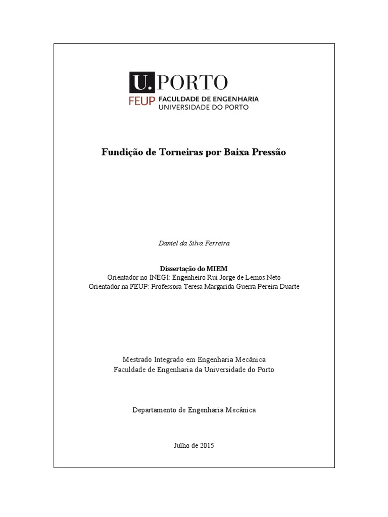 Torres, Francisco Faria Ricca de Ancede. 2014. "Otimização do processo de obtenção de peças em aluminetos de titânio por fundição de precisão", FEUP, UP.