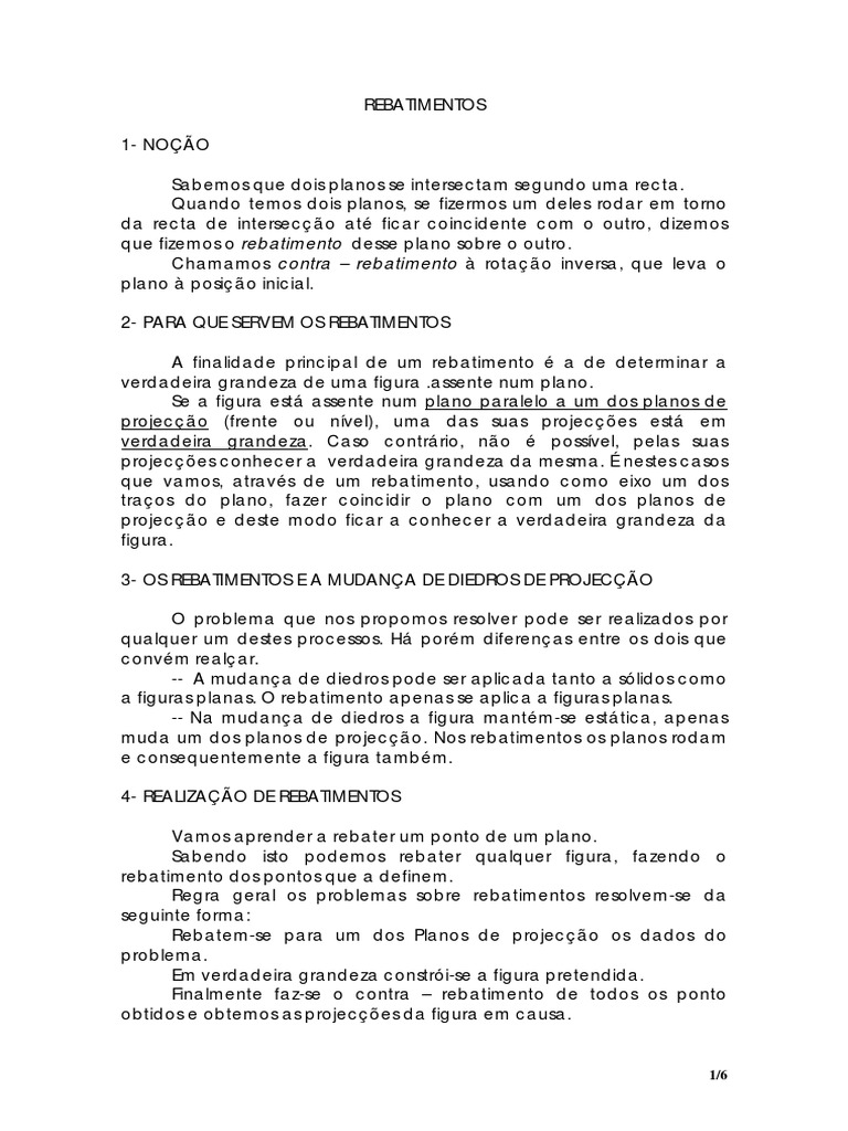 A finalidade principal de um rebatimento é a de determinar a