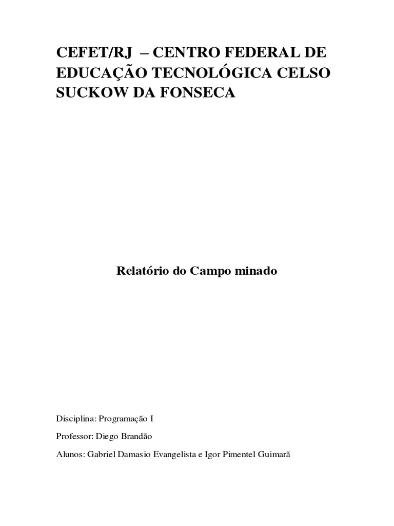 Relatório do Campo minado
