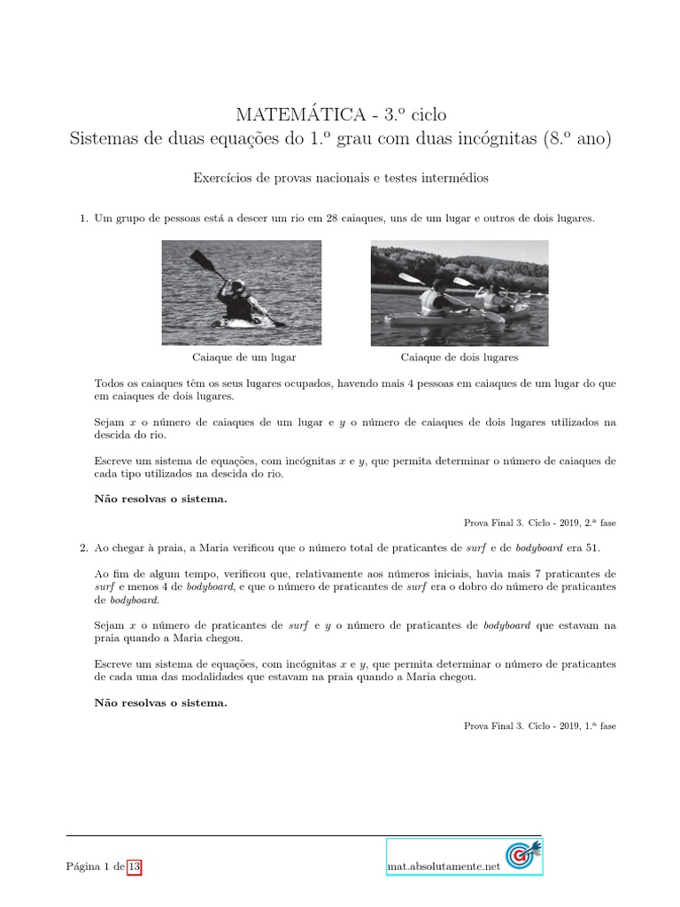 Sistemas de duas equações do 1.o grau com duas incógnitas (8.o ano)