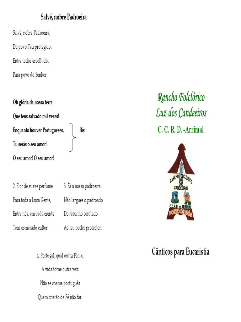 4. Portugal, qual outra Fénix, Cânticos para Eucaristia