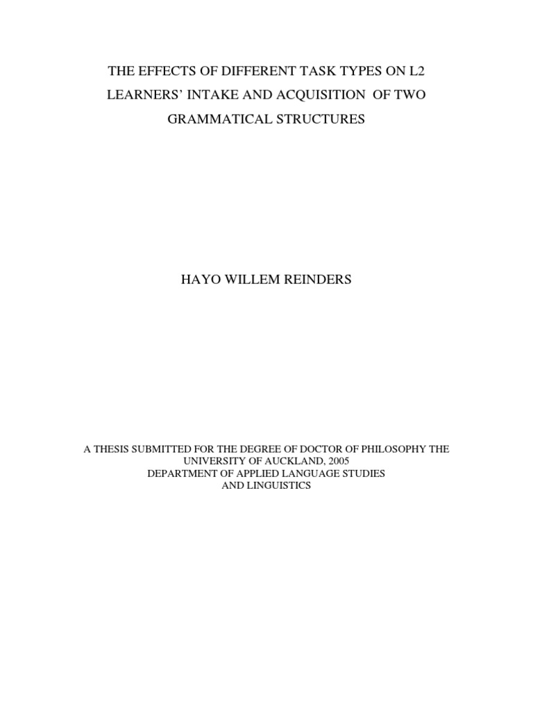 Therefore you need to respond very quickly. . You will have a little time to answer each question. Instructions for the timed test: You will read some sentences. and 2) the items for the a) timed and b) untimed tests. Decide if each sentence is grammatically correct or incorrect. APPENDIX H: INSTRUCTIONS AND ITEMS FOR THE GRAMMATICALITY JUDGEMENT TESTS Below are 1) instructions for the a) timed and b) untimed grammaticality judgement tests. If the sentence is correct. Decide if each sentence is grammatically correct or incorrect. press the left-hand 'Shift' key. Start Instructions for the untimed test: You will read some sentences. press the 'Enter' key. If incorrect. You will now have the chance to practise on 10 sample sentences.