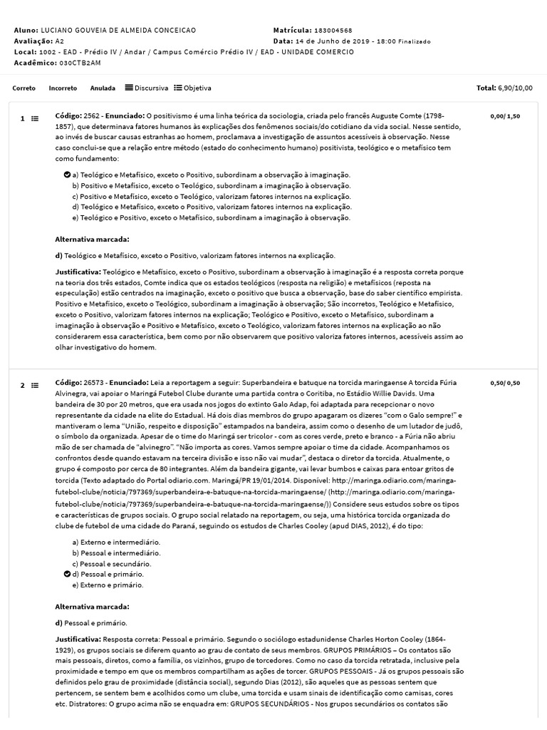 Correto Incorreto Anulada Discursiva Objetiva Total: 6,90/10,00