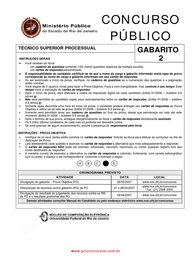 Divulgação do gabarito – Prova Objetiva (PO) 26/03/2007 www.nce.ufrj.br/concursos