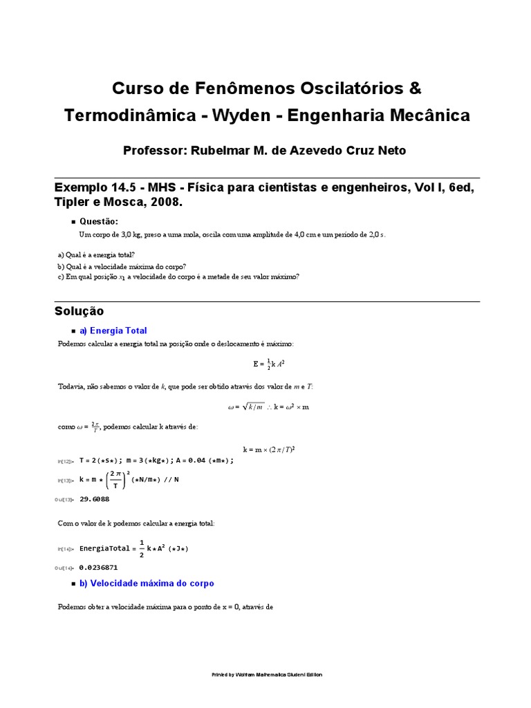 Exemplo 14.5 - MHS - Física para cientistas e engenheiros, Vol I, 6ed,