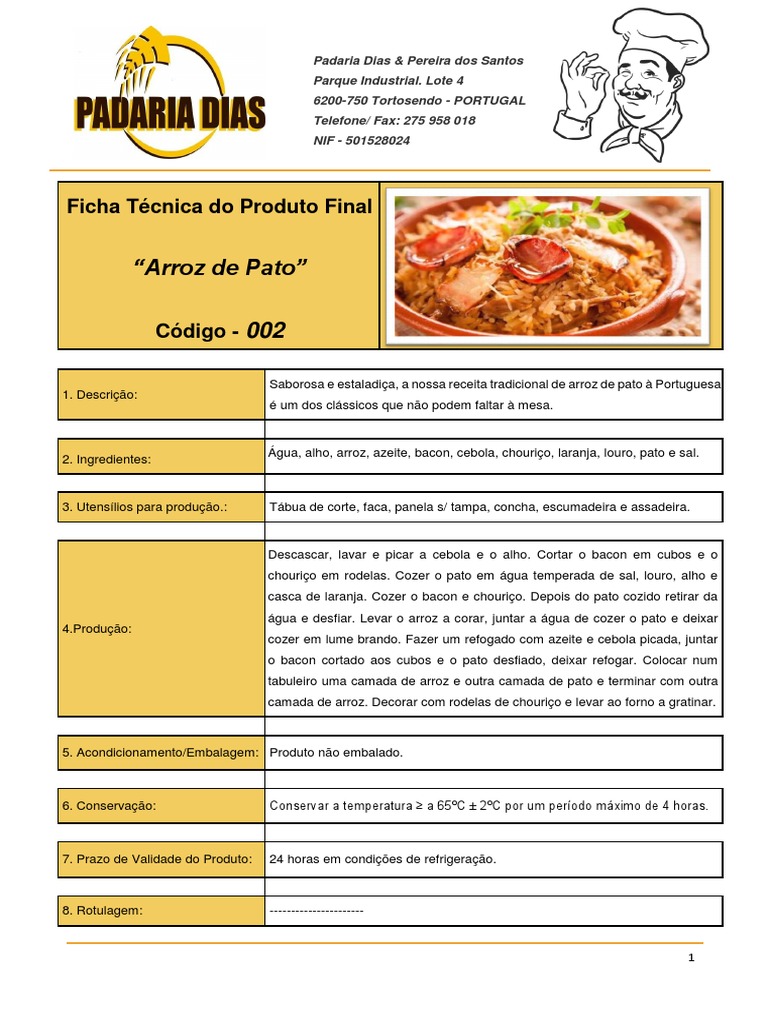 Ficha Técnica do Produto Final