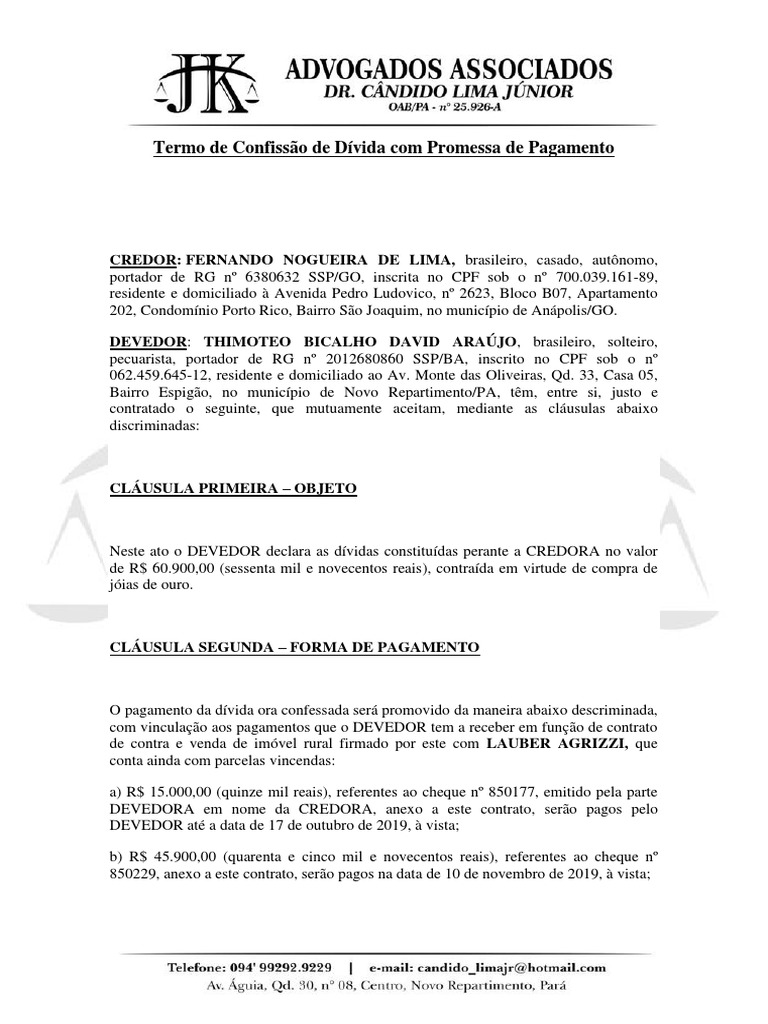 Termo de Confissão de Dívida com Promessa de Pagamento