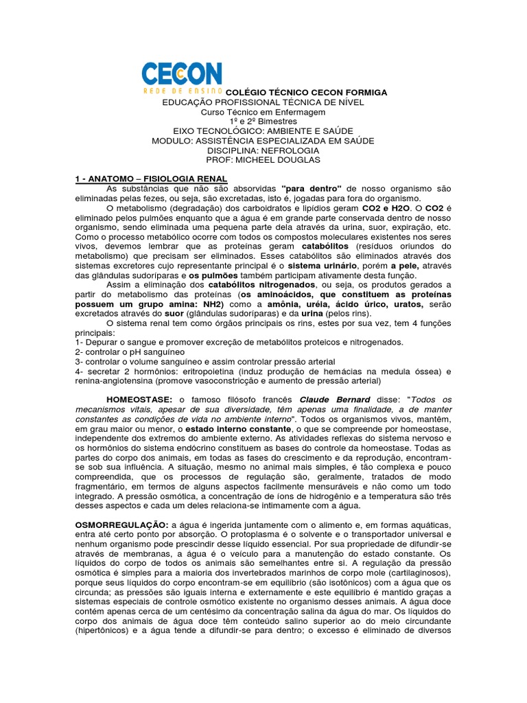 excretar o excesso. Esse trabalho de excreção necessita de energia, o que se comprova pela