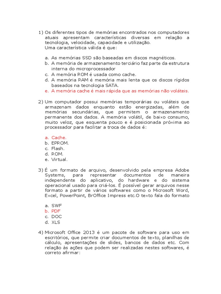 e. A memória cache é mais rápida que as memórias não voláteis.