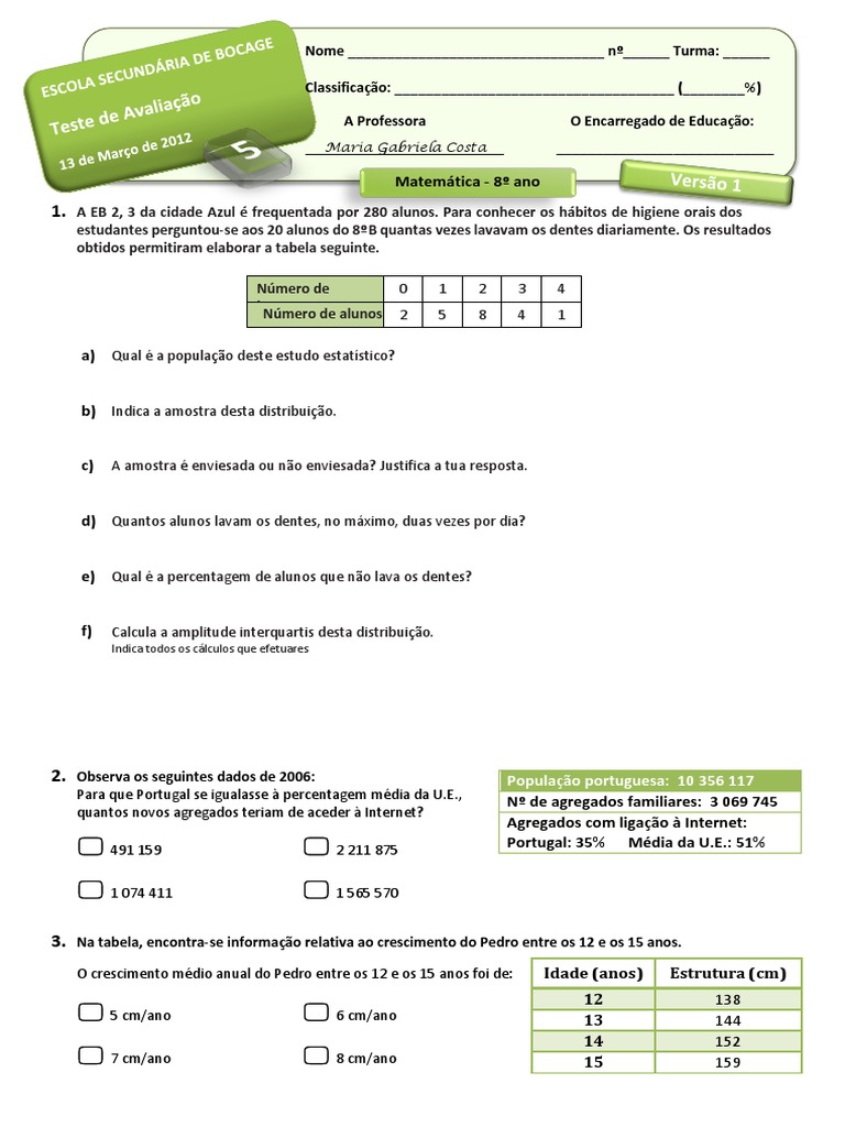 2. Observa os seguintes dados de 2006: População portuguesa: 10 356 117