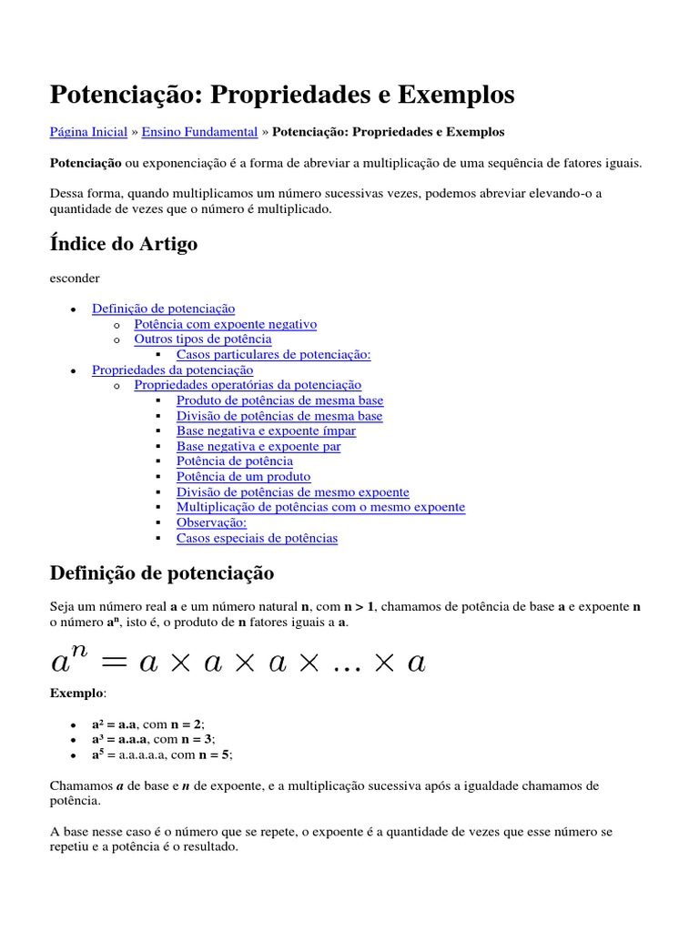 Página Inicial » Ensino Fundamental » Potenciação: Propriedades e Exemplos