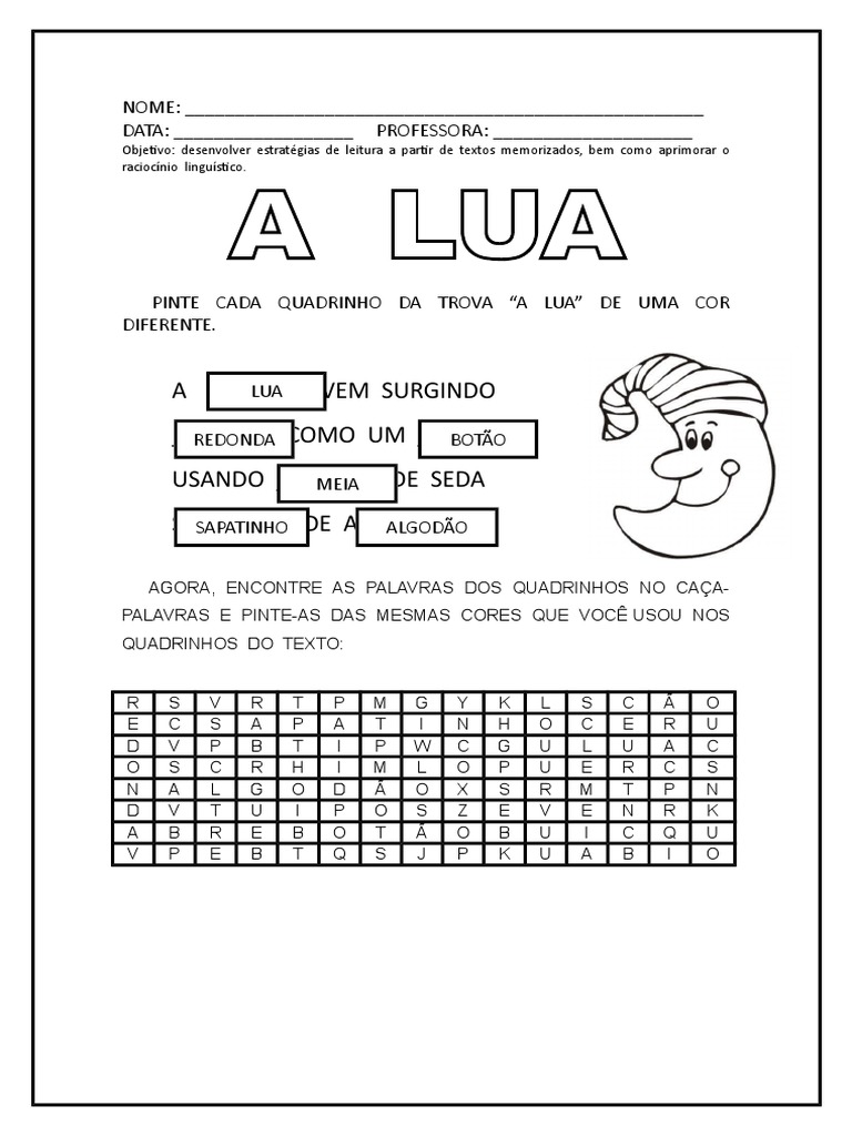 PINTE CADA QUADRINHO DA TROVA “A LUA” DE UMA COR
