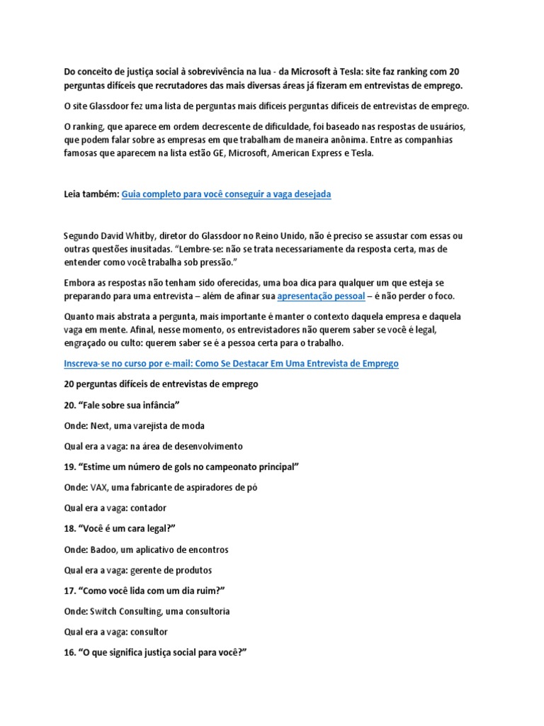 vaga em mente. Afinal, nesse momento, os entrevistadores não querem saber se você é legal,