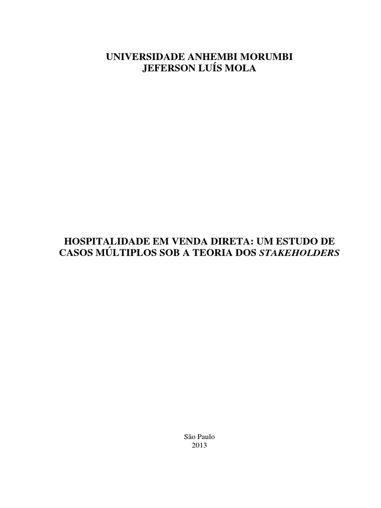 Palavras-chave: Hospitalidade. Venda Direta. Serviços. Stakeholders.