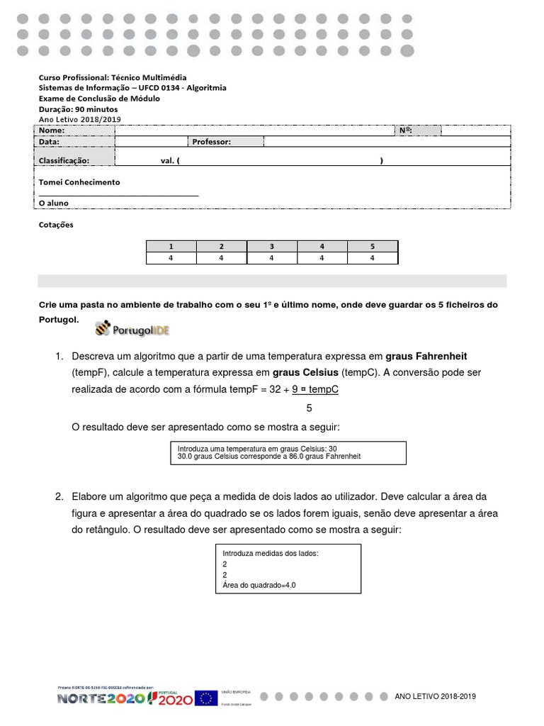 Crie uma pasta no ambiente de trabalho com o seu 1º e último nome, onde deve guardar os 5 ficheiros do