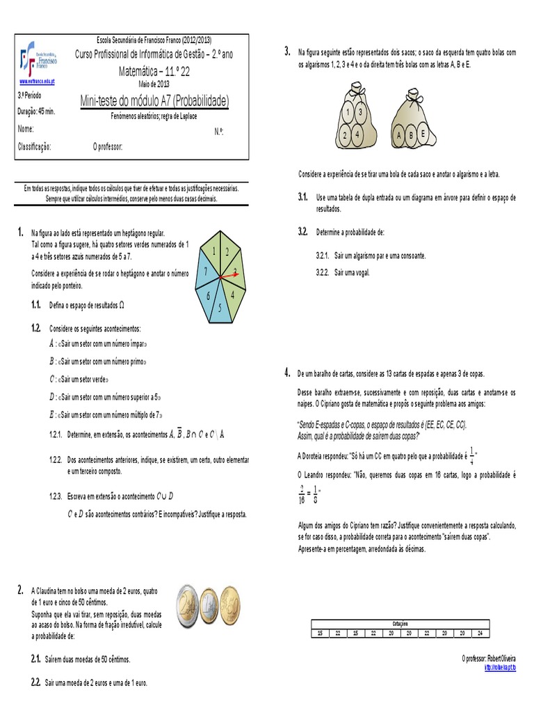 1. Na figura ao lado está representado um heptágono regular. 3.2. Determine a probabilidade de: