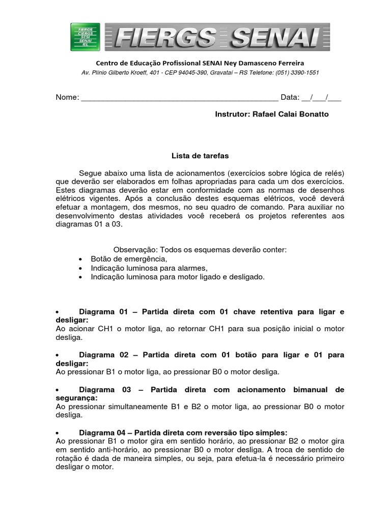 elétricos vigentes. Após a conclusão destes esquemas elétricos, você deverá