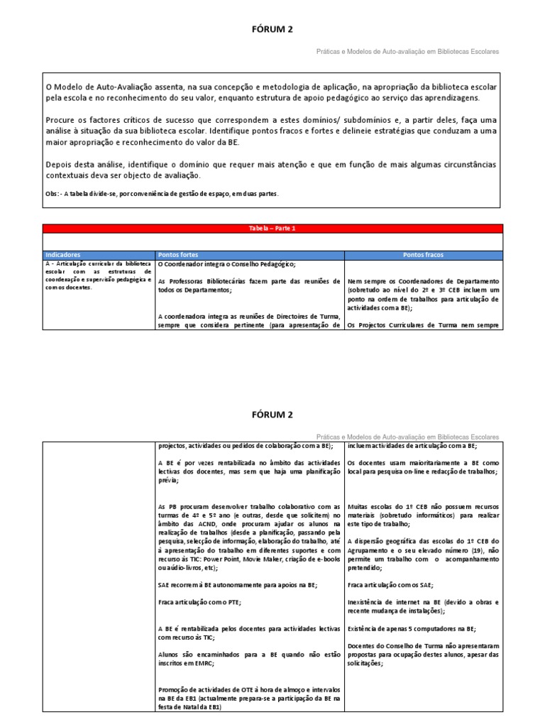 análise à situação da sua biblioteca escolar. Identifique pontos fracos e fortes e delineie estratégias que conduzam a uma