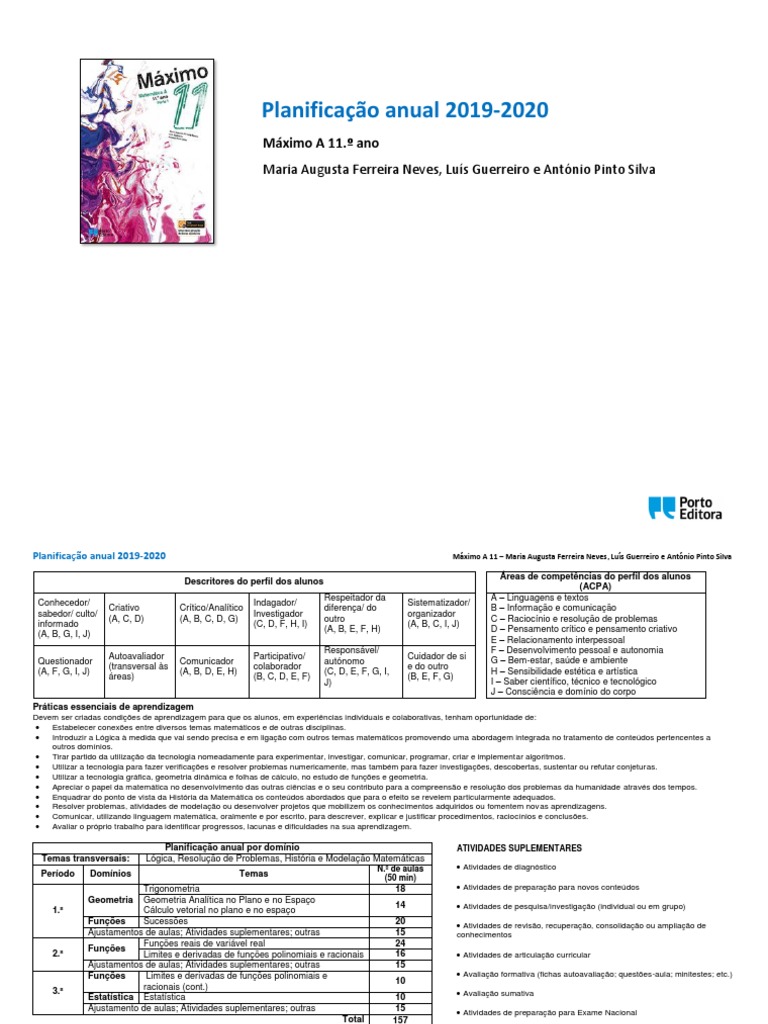 Planificação anual 2019-2020 Máximo A 11 – Maria Augusta Ferreira Neves, Luís Guerreiro e António Pinto Silva