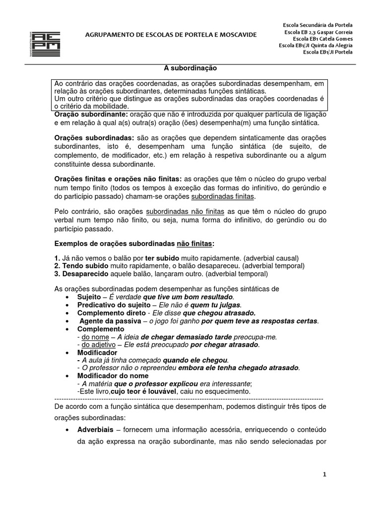 Orações subordinadas