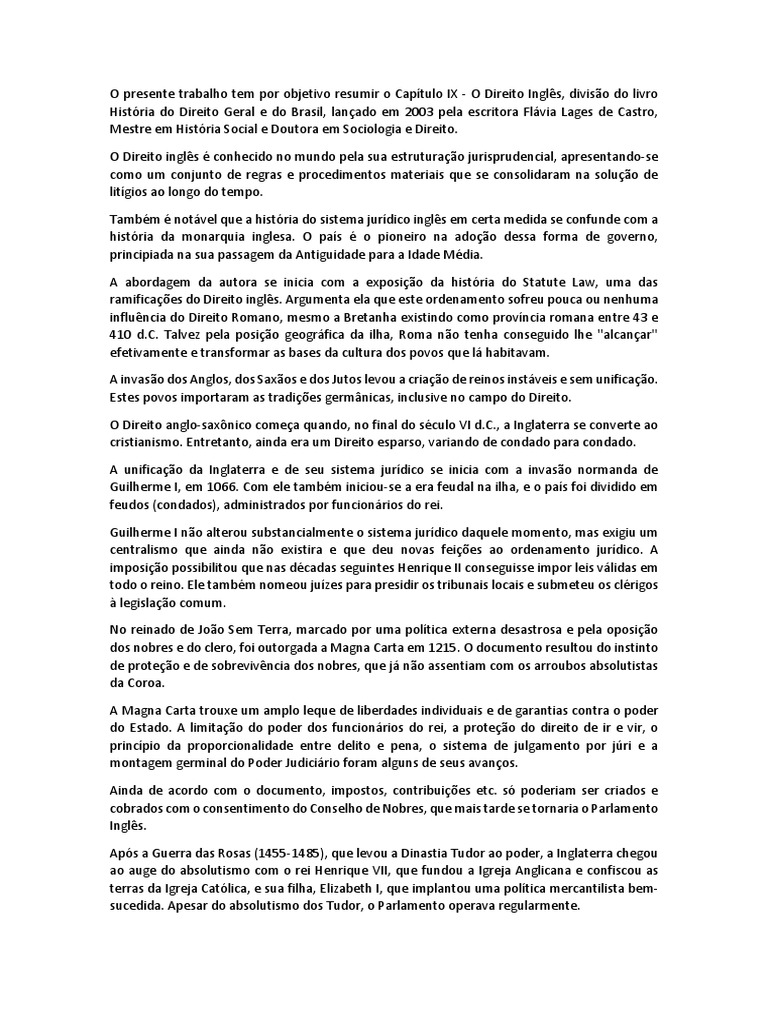 O presente trabalho tem por objetivo resumir o Capítulo IX - O Direito Inglês, divisão do livro