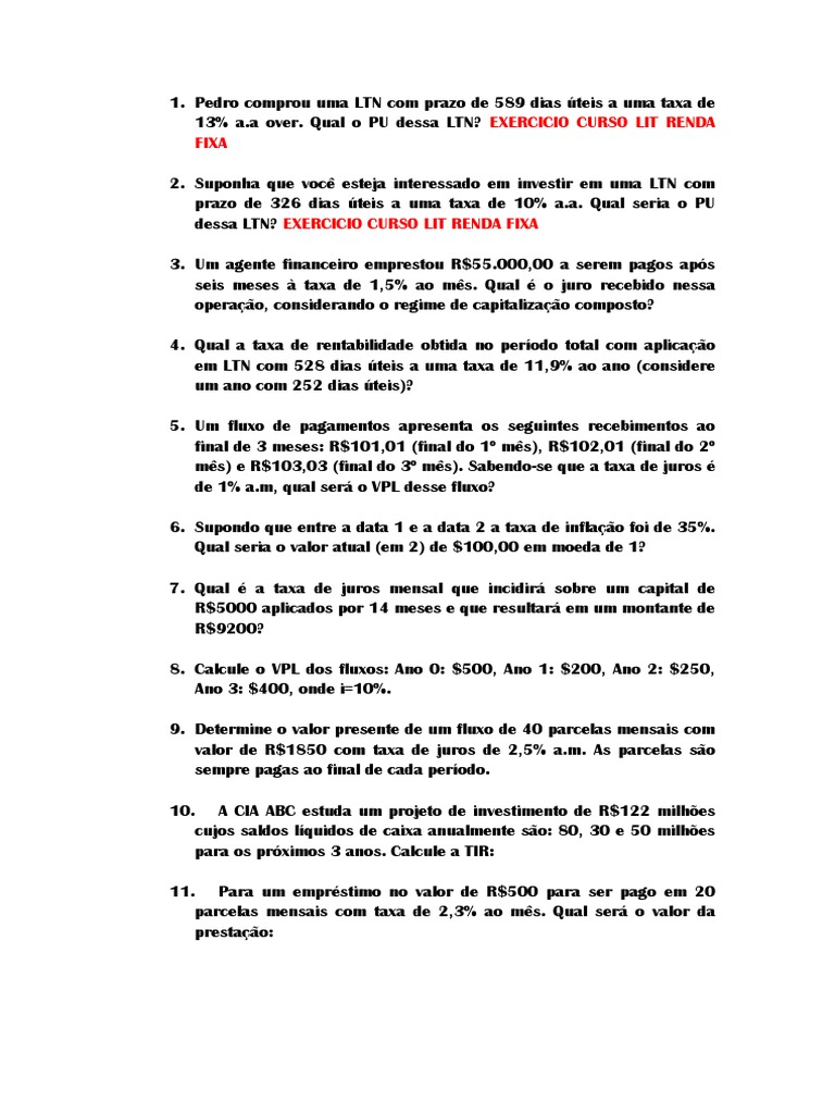 dessa LTN? EXERCICIO CURSO LIT RENDA FIXA