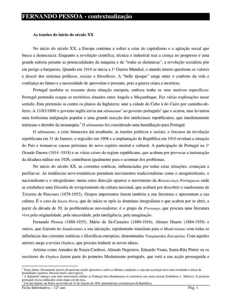Europa. Nasce o Orpheu11. Na “Introdução” Luís de Montalvor procura fazer a profissão de fé literária de