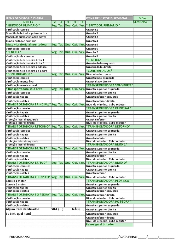 ITENS DE VISTORIA DIARIA ITENS DE VISTORIA SEMANAL 2-Dec