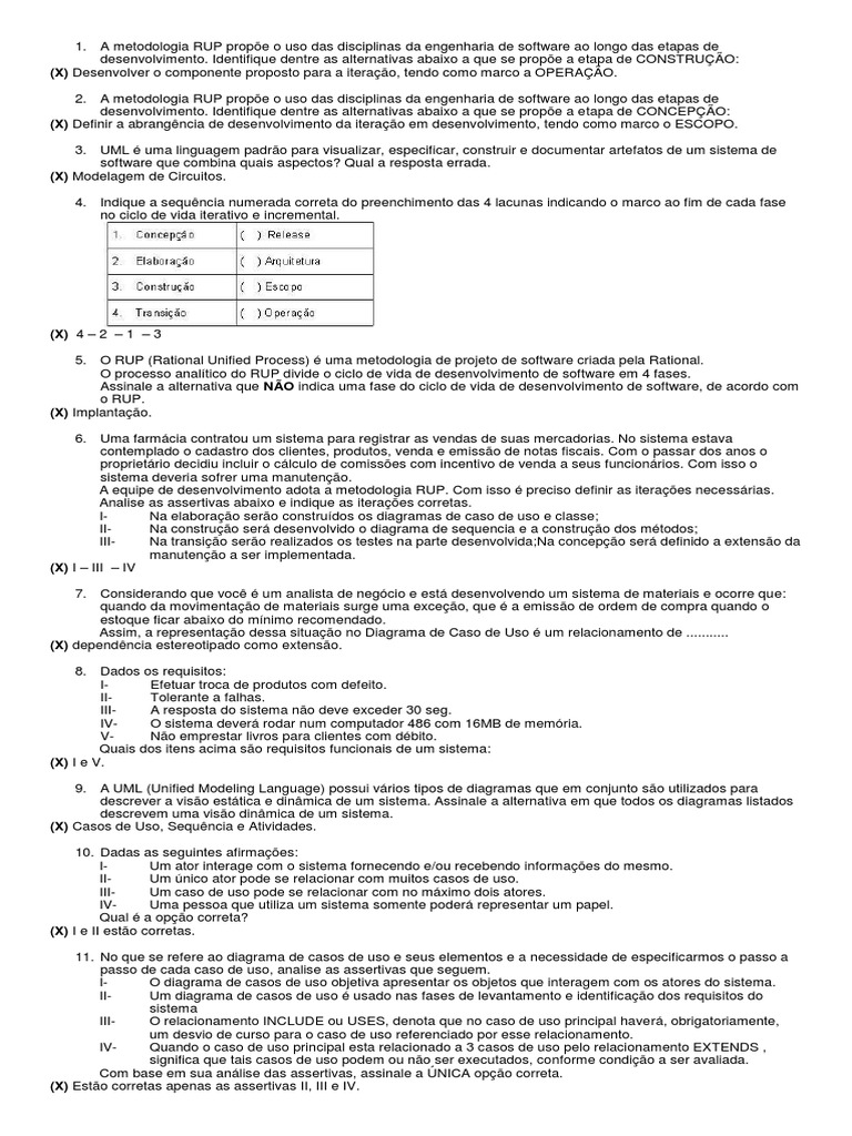2. A metodologia RUP propõe o uso das disciplinas da engenharia de software ao longo das etapas de