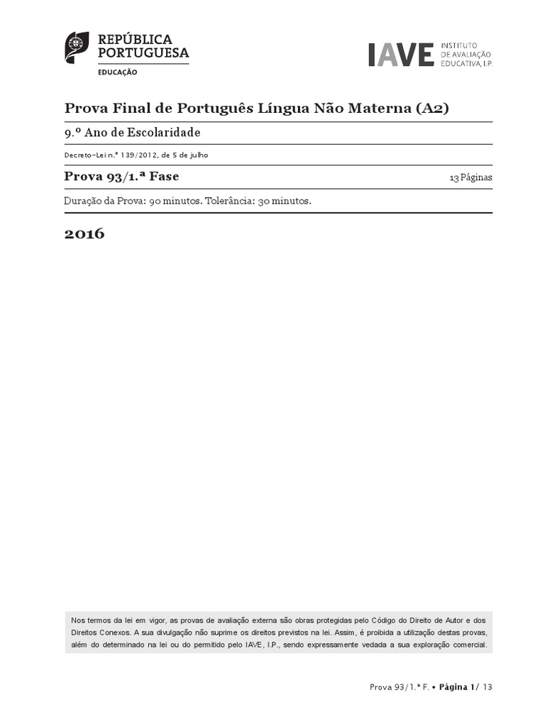 Nos termos da lei em vigor, as provas de avaliação externa são obras protegidas pelo Código do Direito de Autor e dos