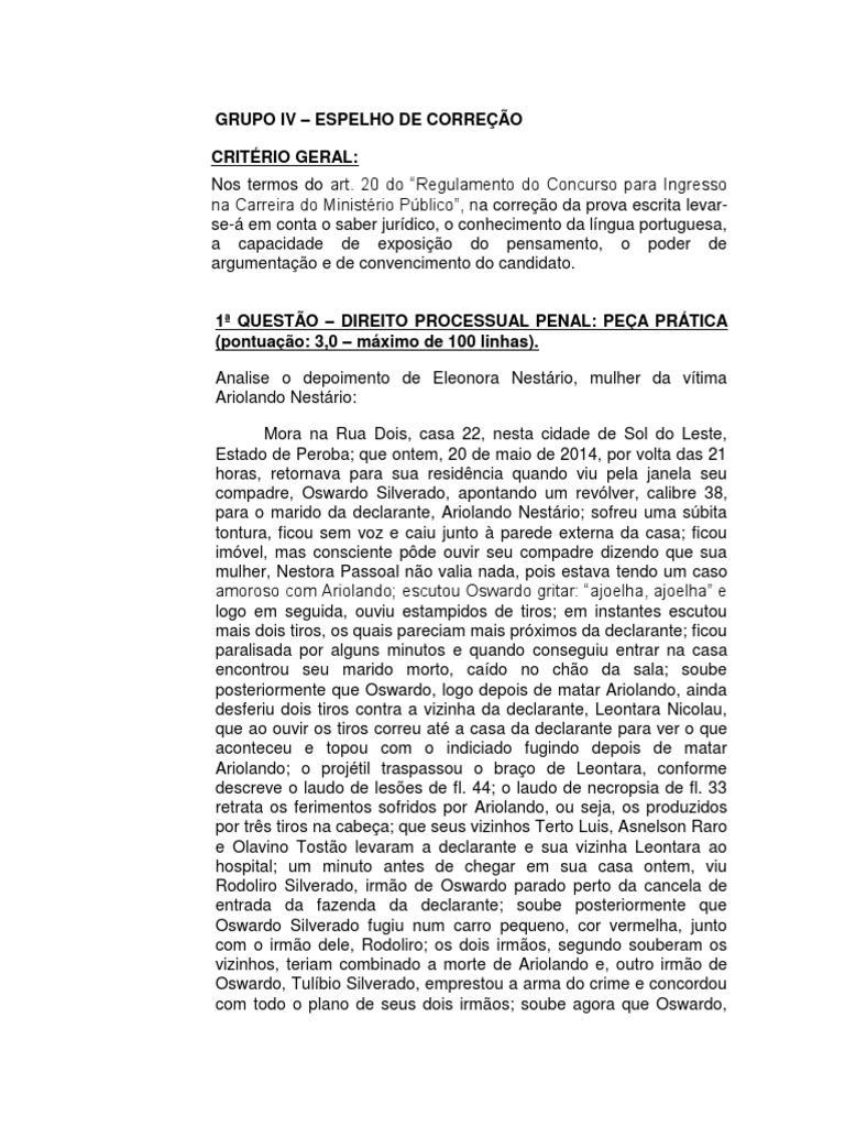 na Carreira do Ministério Público”, na correção da prova escrita levar-