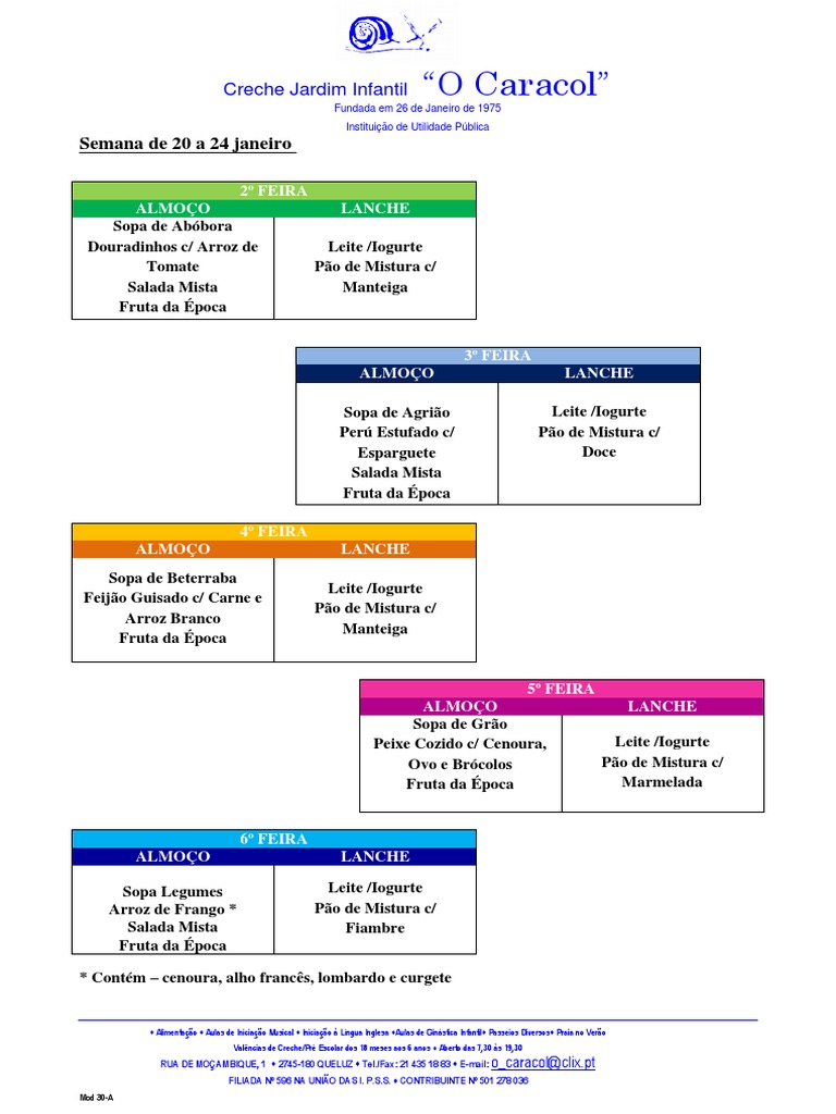 RUA DE MOÇAMBIQUE, 1 2745-180 QUELUZ Tel./Fax: 21 435 18 83 E-mail: o_caracol@[Link]