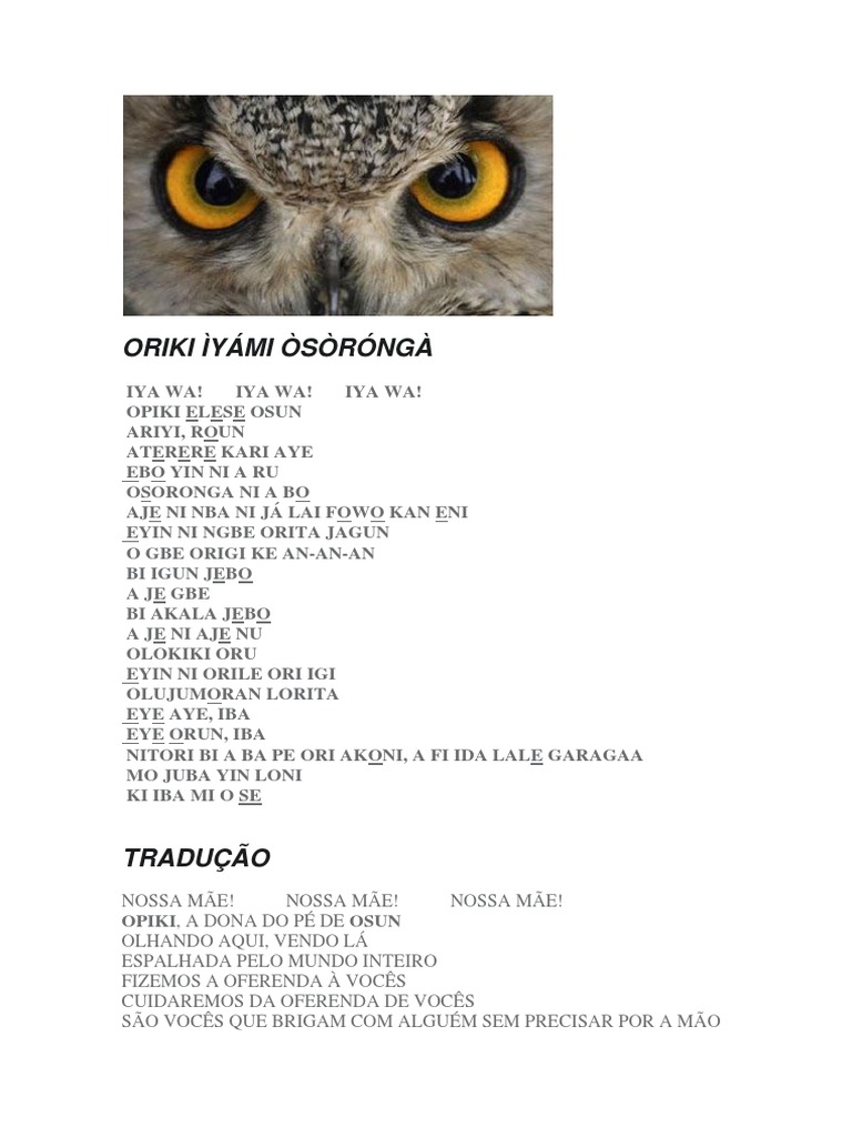 coletiva é conhecido por vários nomes, dentre eles, IYA MI OSORONGA.