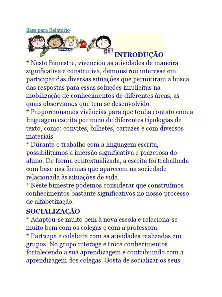 * Adaptou-se muito bem à nova escola e relaciona-se