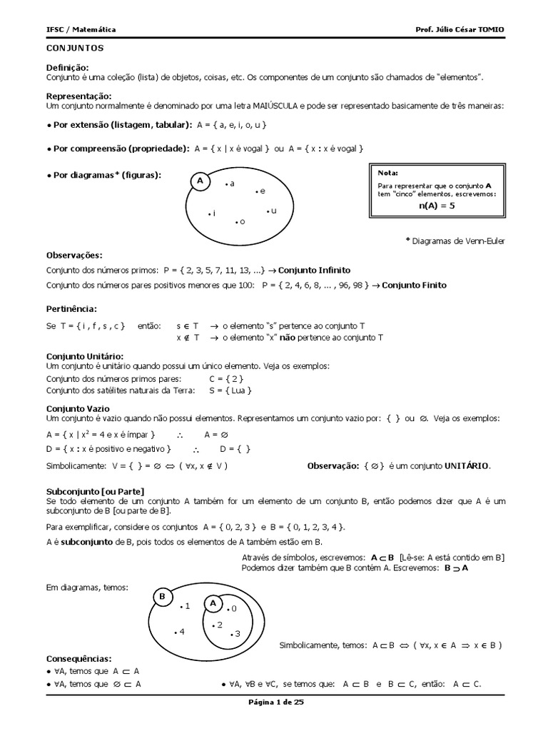 conjunto chama-se CONJUNTO dos SUBCONJUNTOS de A ou CONJUNTO das PARTES de A e é indicado por P(A).