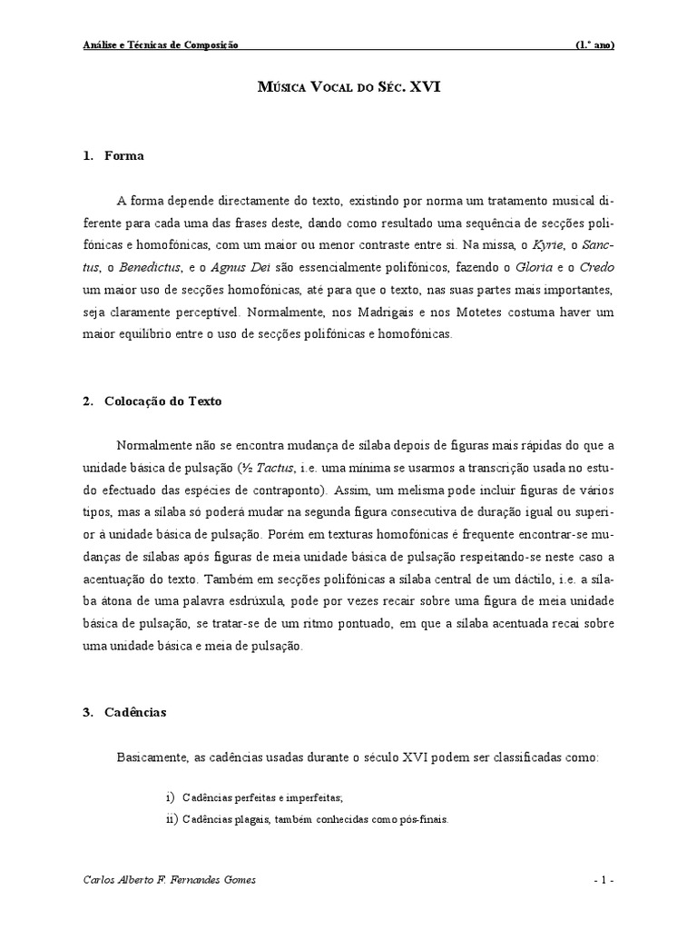 tando progressivamente o número de vozes até se formar uma cadência. Por outro lado, as sec-