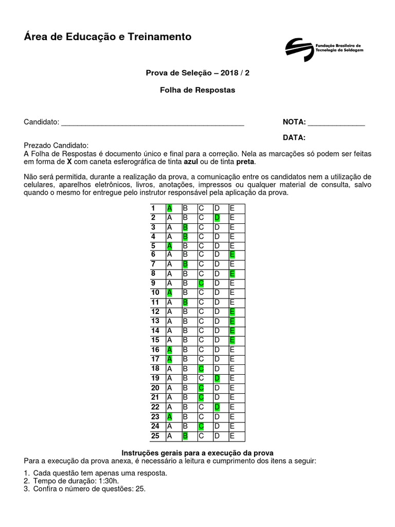Folha de Respostas