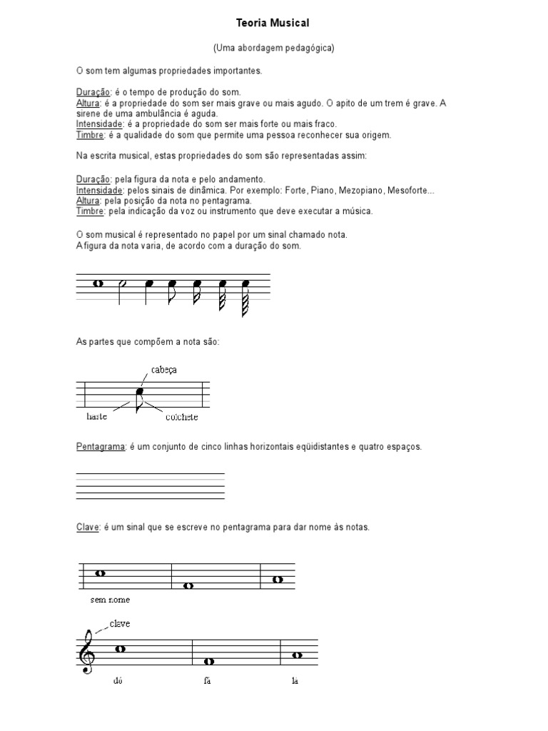 Pentagrama: é um conjunto de cinco linhas horizontais eqüidistantes e quatro espaços.