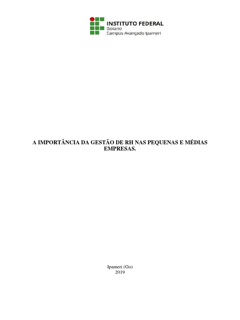 Palavras-chave: Gestão. Recursos Humanos. Pequenas e Médias Empresas.