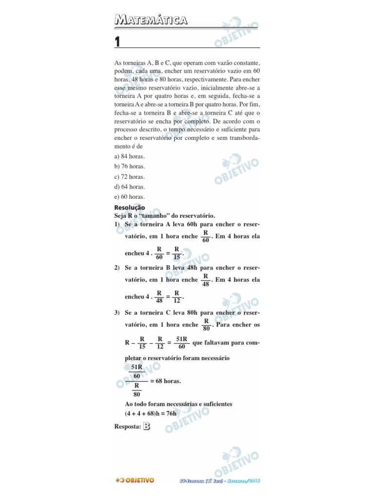 2) Se a torneira B leva 48h para encher o reser-