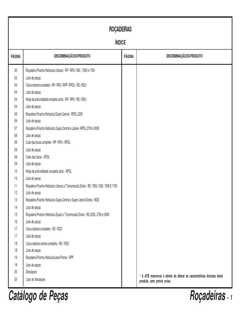 06 50920100616 Caixa redutora completa ................................................................. 01 40 60200501937 Cardan agrícola CC 2065 / 3PE ....................................................... 01
