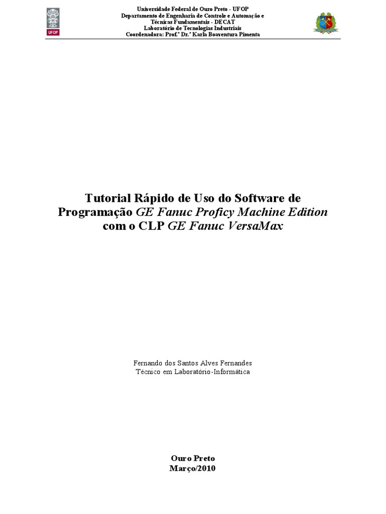 Engenharia de Controle e Automação, no uso do software de programação GE Fanuc Proficy