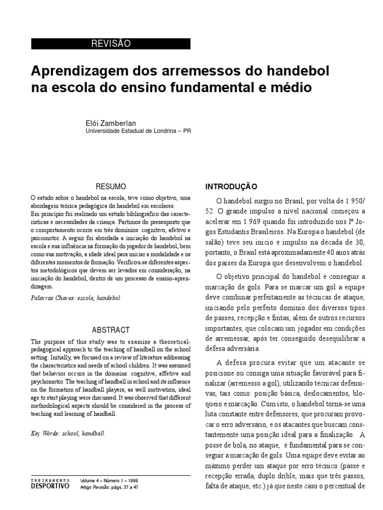 Key Words: school, handball. tantemente uma posição ideal para a finalização. A