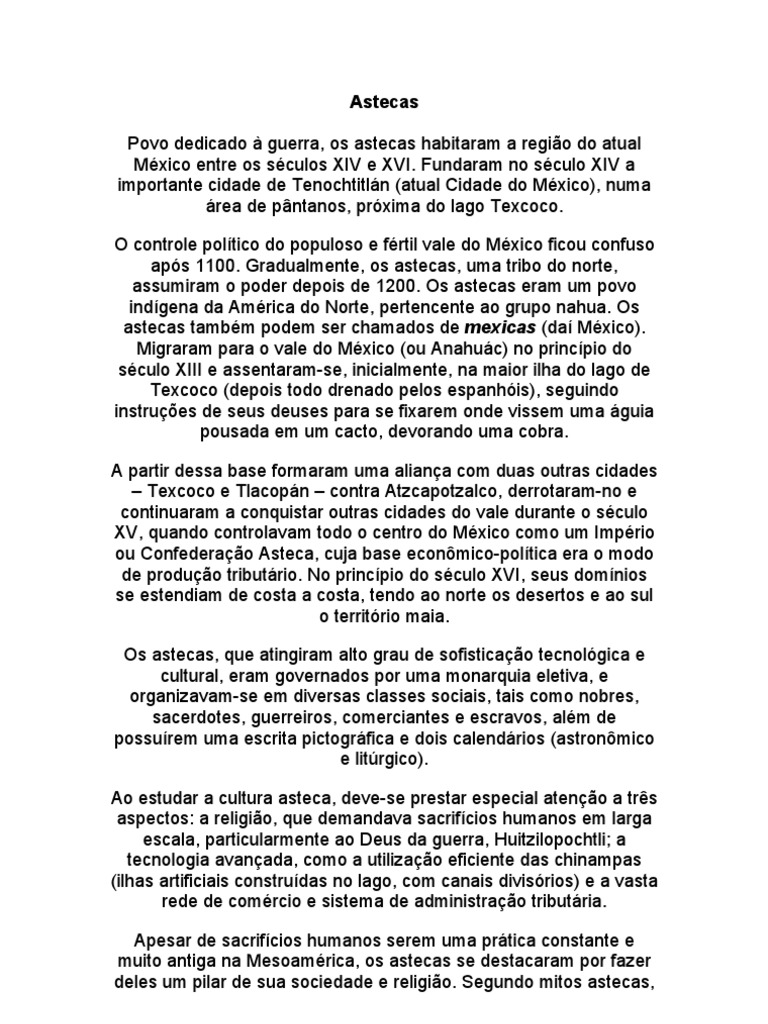 Ao estudar a cultura asteca, deve-se prestar especial atenção a três