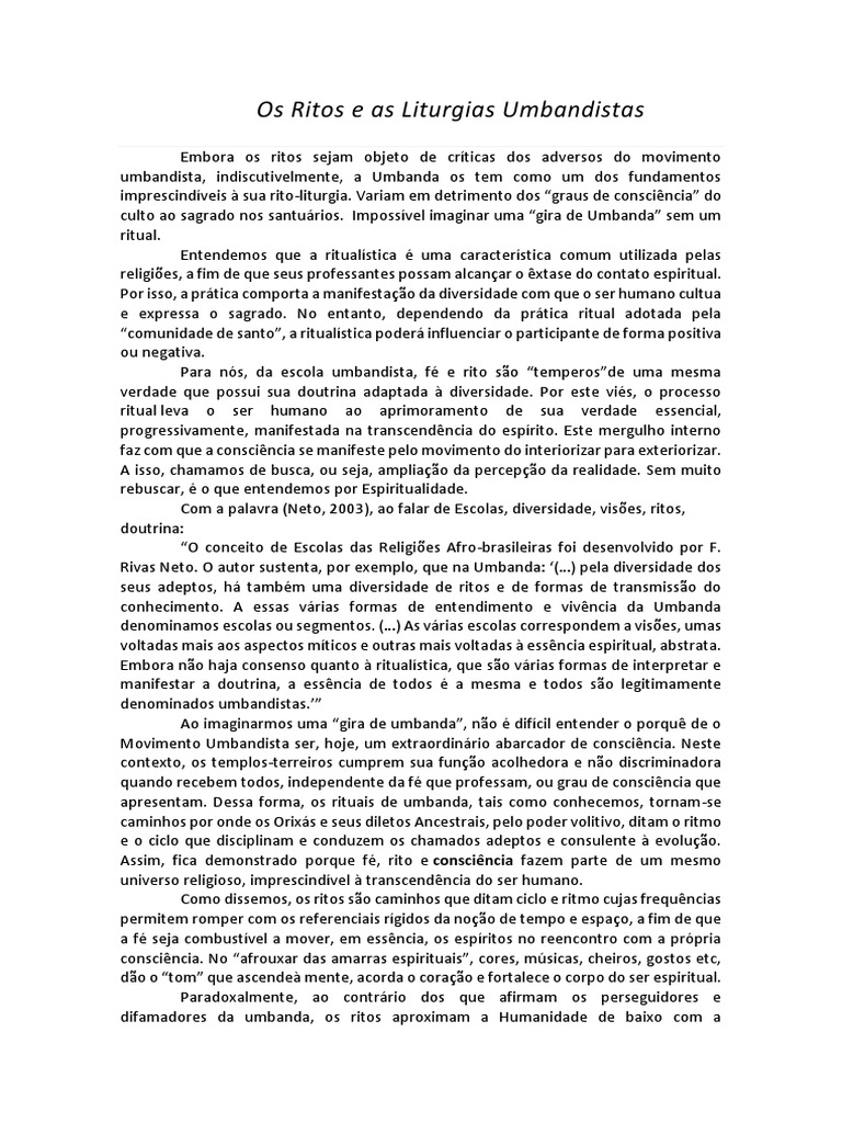 Rivas Neto. O autor sustenta, por exemplo, que na Umbanda: ‘(…) pela diversidade dos